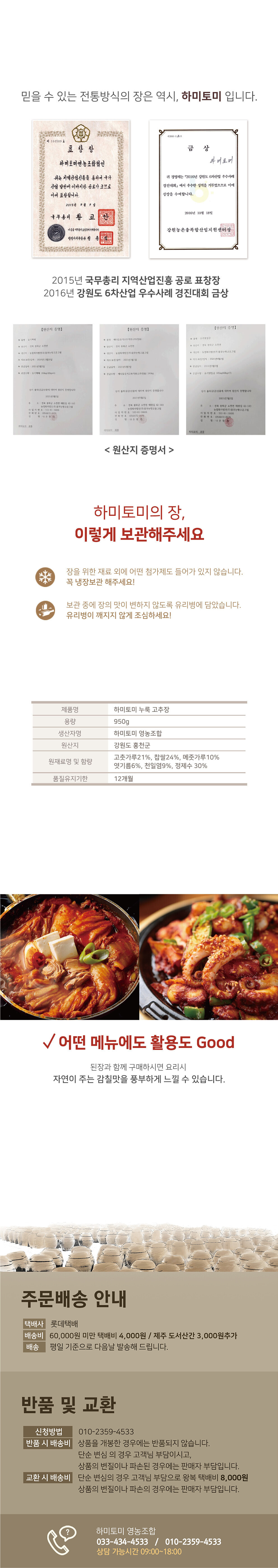 [홍천]하미토미 프리미엄 누룩 고추장 950g